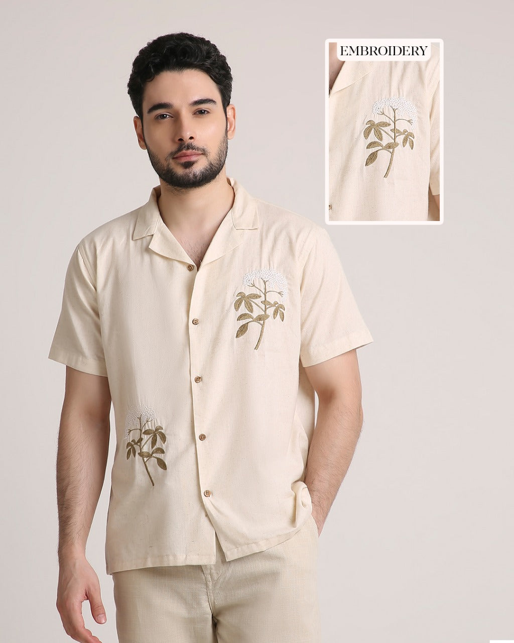 Elevate your wardrobe with the understated elegance of the Ivory Bloom Unisex Shirt. Made from a luxurious pure cotton-linen blend, this breathable shirt features delicate floral embroidery in earthy tones, offering a refined yet natural aesthetic. With its relaxed silhouette, wooden buttons, and classic camp collar, it’s designed for effortless wear across all seasons. A versatile staple for anyone who values comfort, craftsmanship, and timeless style—perfect for casual days, creative workspaces, or warm evening gatherings.
