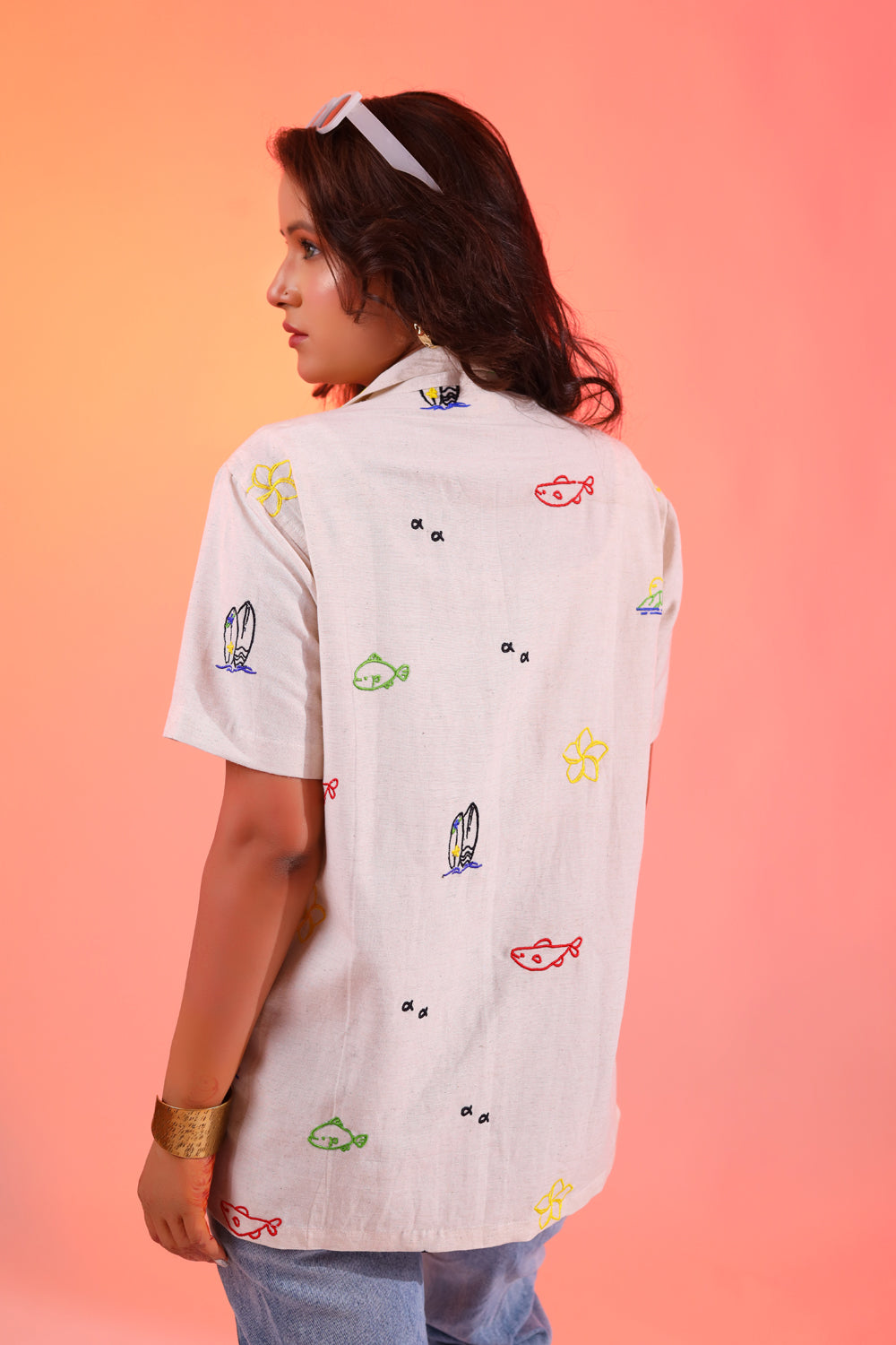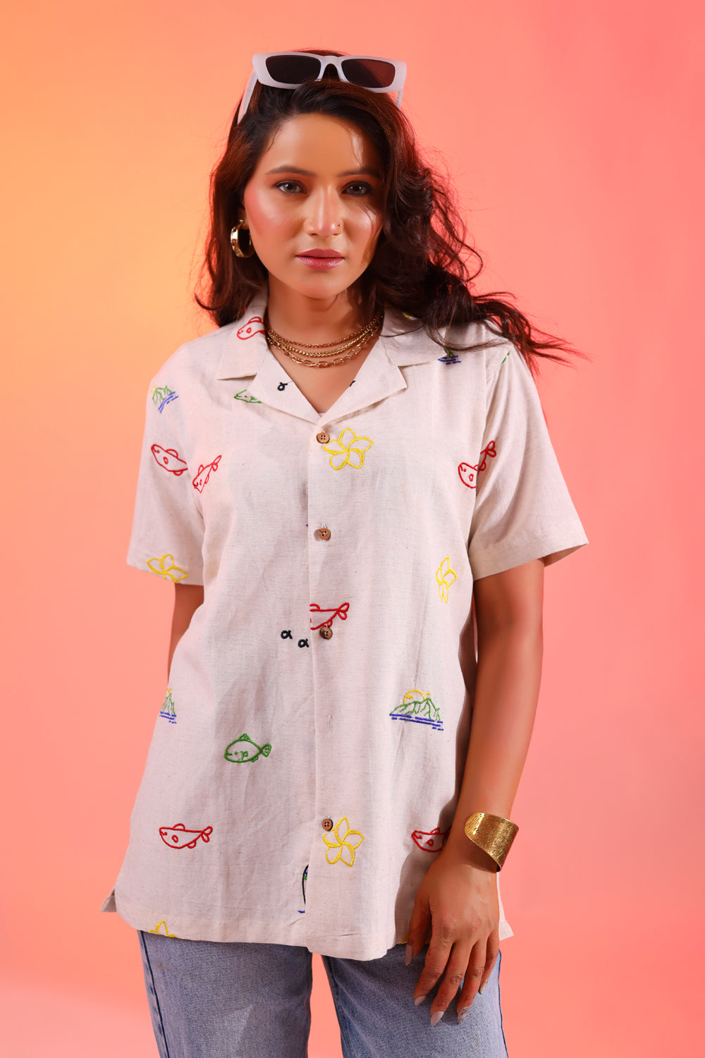 Introducing our exclusive embroidered shirt, meticulously designed to encapsulate the essence of a dream vacation. Whether you're drawn to the majestic allure of mountains or the blissful serenity of a beach getaway, this shirt harmoniously blends these elements into a wearable work of art. Crafted from the finest cotton, each stitch tells a tale of wanderlust and adventure, making it a unique creation that's as comfortable as it is stylish. Elevate your vacation wardrobe with our embroidered masterpiece and let the journey begin!