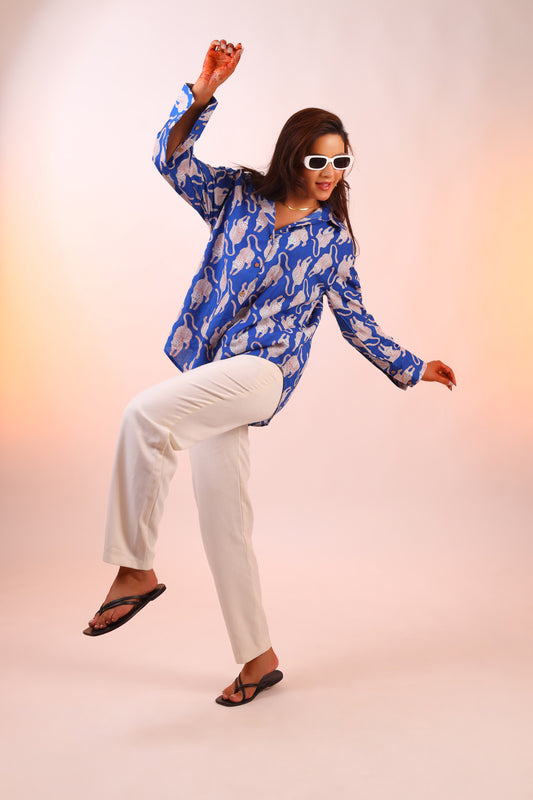 Blue brick ajrakh shirt - Ov