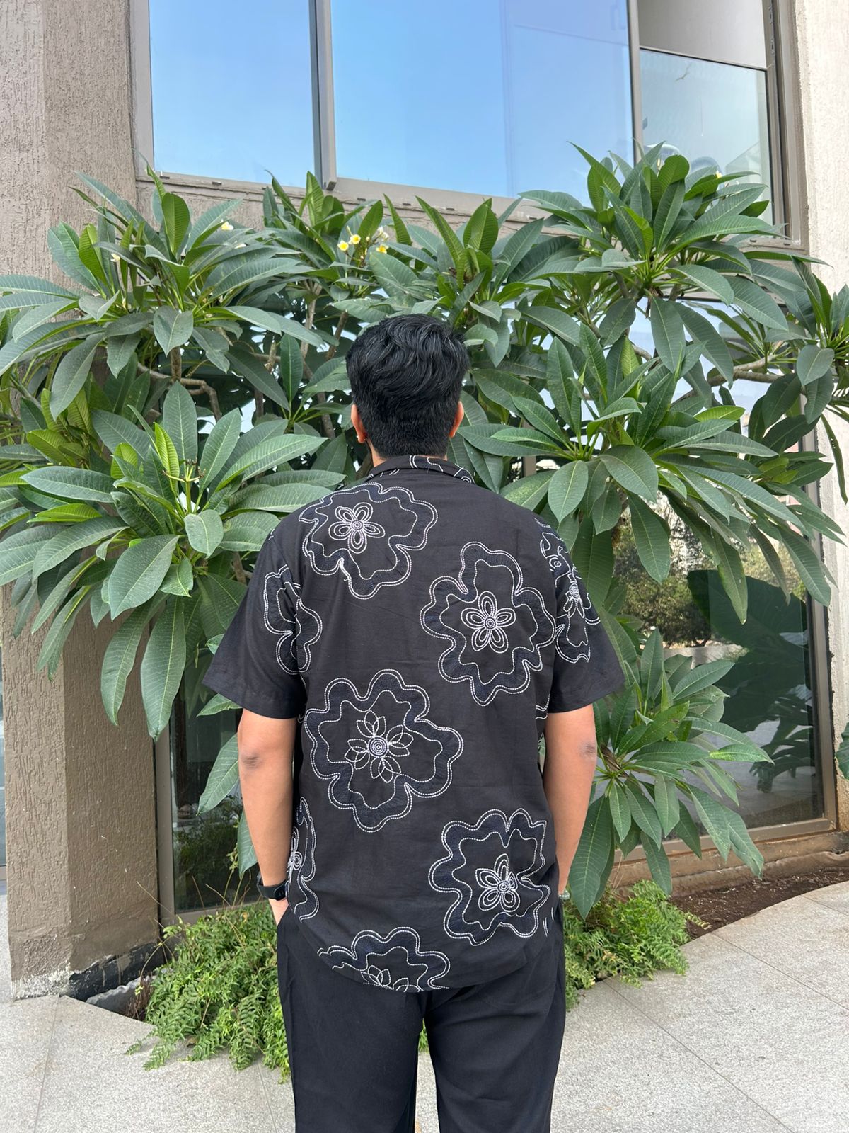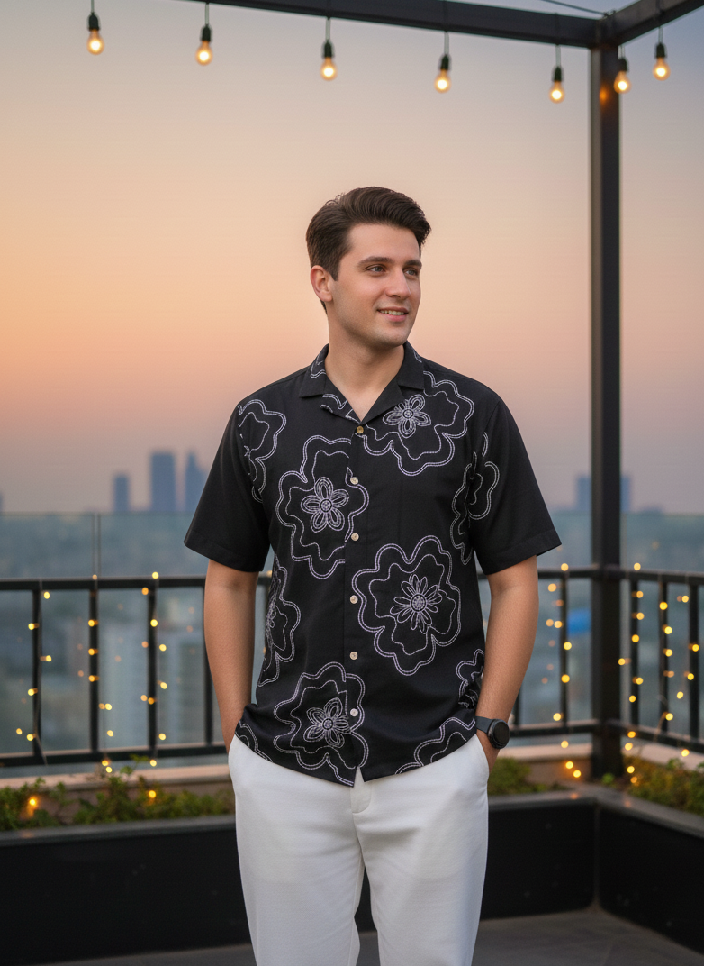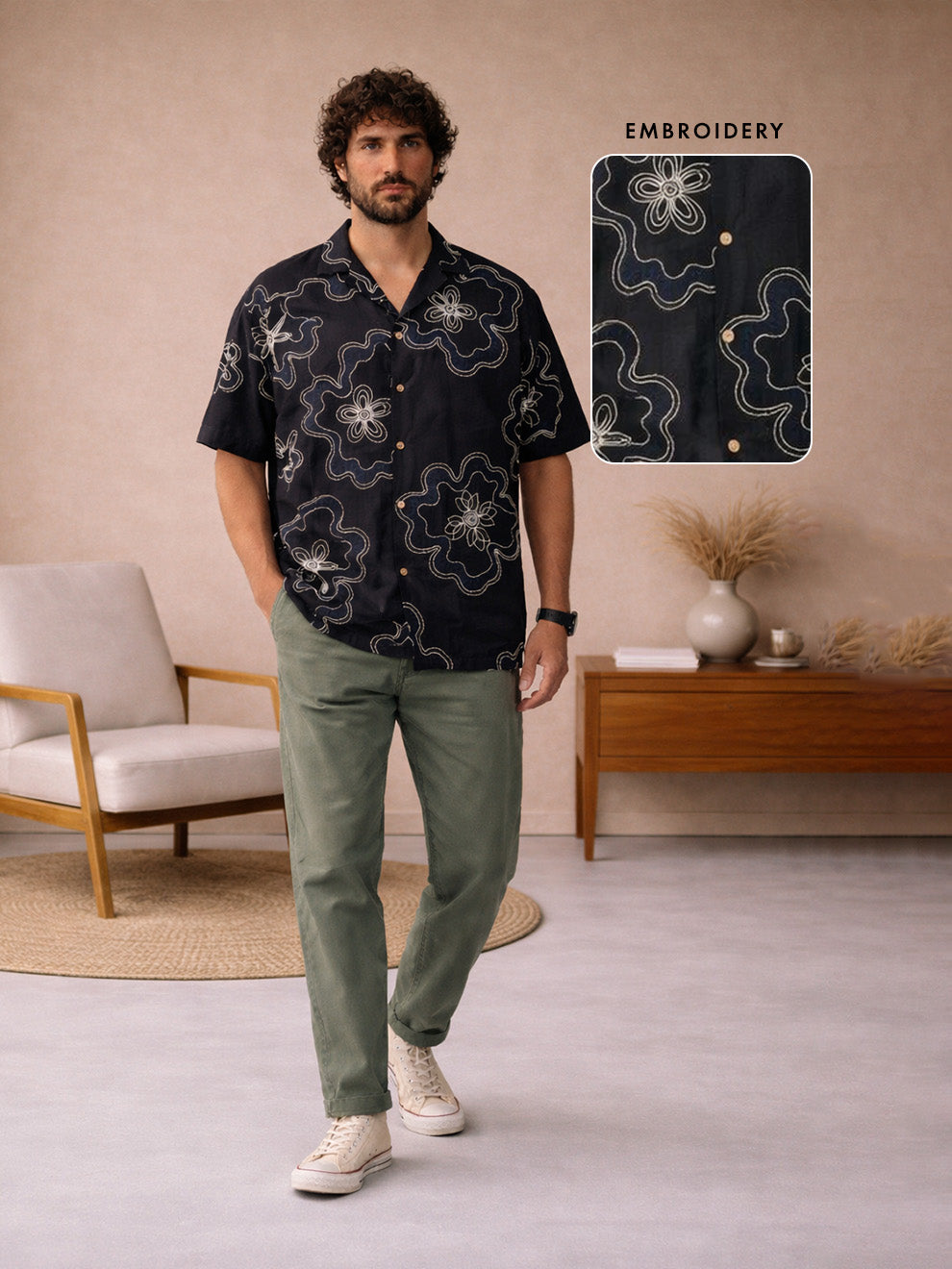 Crafted in a soft and breathable cotton–linen blend, this relaxed-fit shirt offers all-day comfort while showcasing bold embroidered floral motifs that add an artisanal touch to your look. Finished with wooden buttons and a lightweight feel, it’s the perfect everyday piece for casual outings, vacations, or effortless style on warm days.