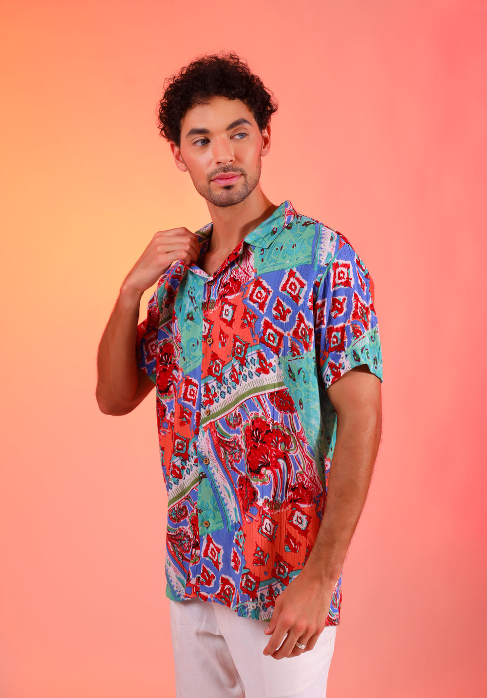 Introducing our Color Burst Shirt, crafted from delightfully crinkled material that's ideal for the summer season. This shirt is designed to add a burst of vibrancy to your wardrobe, featuring a playful mix of colors that exude energy and style. Embrace the relaxed yet chic vibe of wrinkled fabric, making it a comfortable and trendy choice for your summer outings. Elevate your look with this unique piece that effortlessly combines comfort with a pop of color.