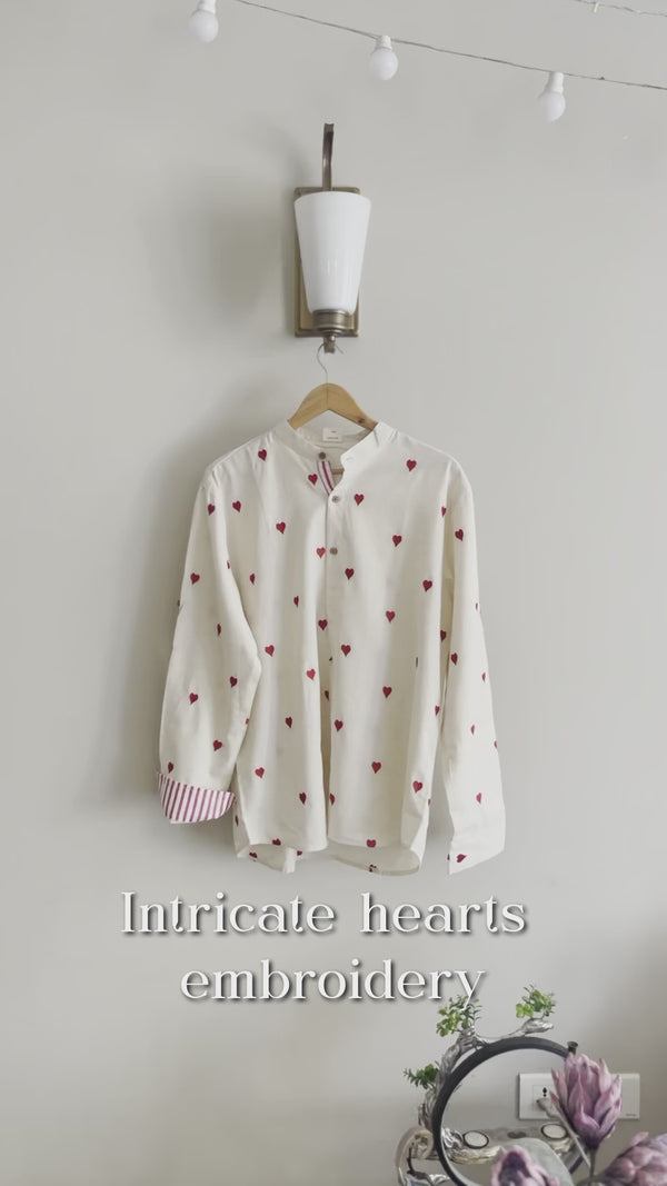 This Heartsplay embroidered shirt is a celebration in itself, meticulously crafted from pure cotton and tailor-made for the grandeur of Diwali parties and other festive celebrations. Its exquisite design features an intricate hearts pattern embroidery, lending an air of sophistication and style to your attire. The pure cotton fabric ensures comfort, allowing you to revel in the festivities with ease. Whether you're attending a Diwali gathering or any other special occasion, this shirt is your perfect choice to make a lasting impression and embrace the joyous spirit of celebration.