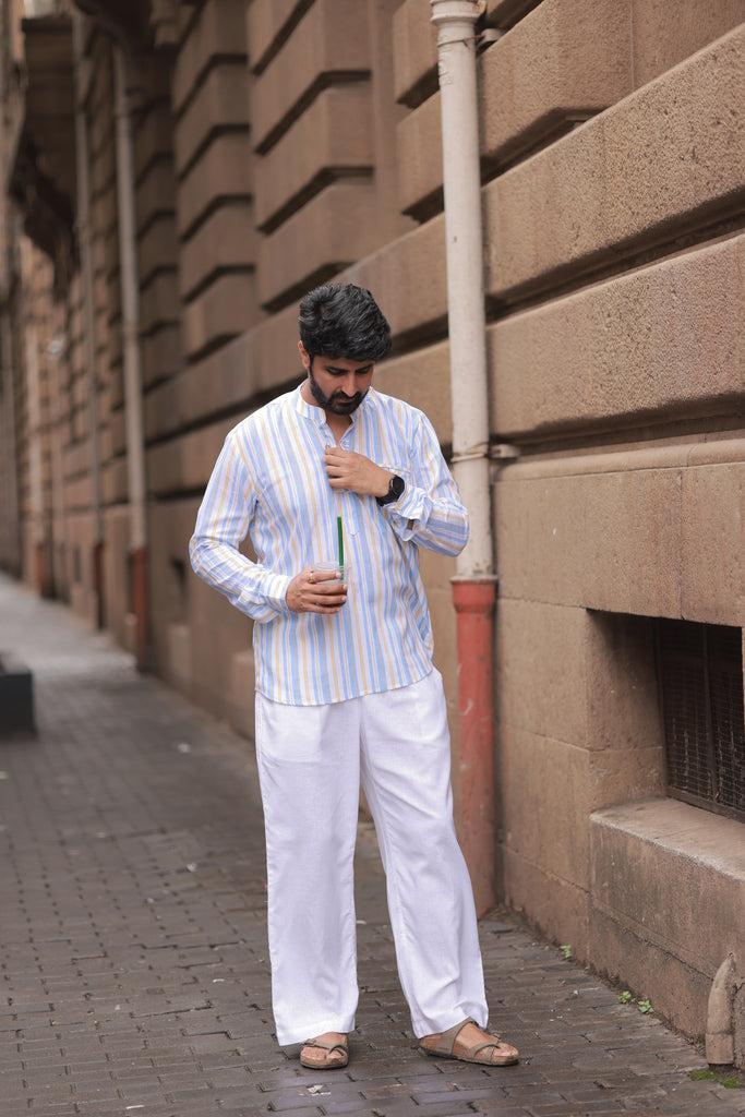 White and Blue stripe Kurta Shirt