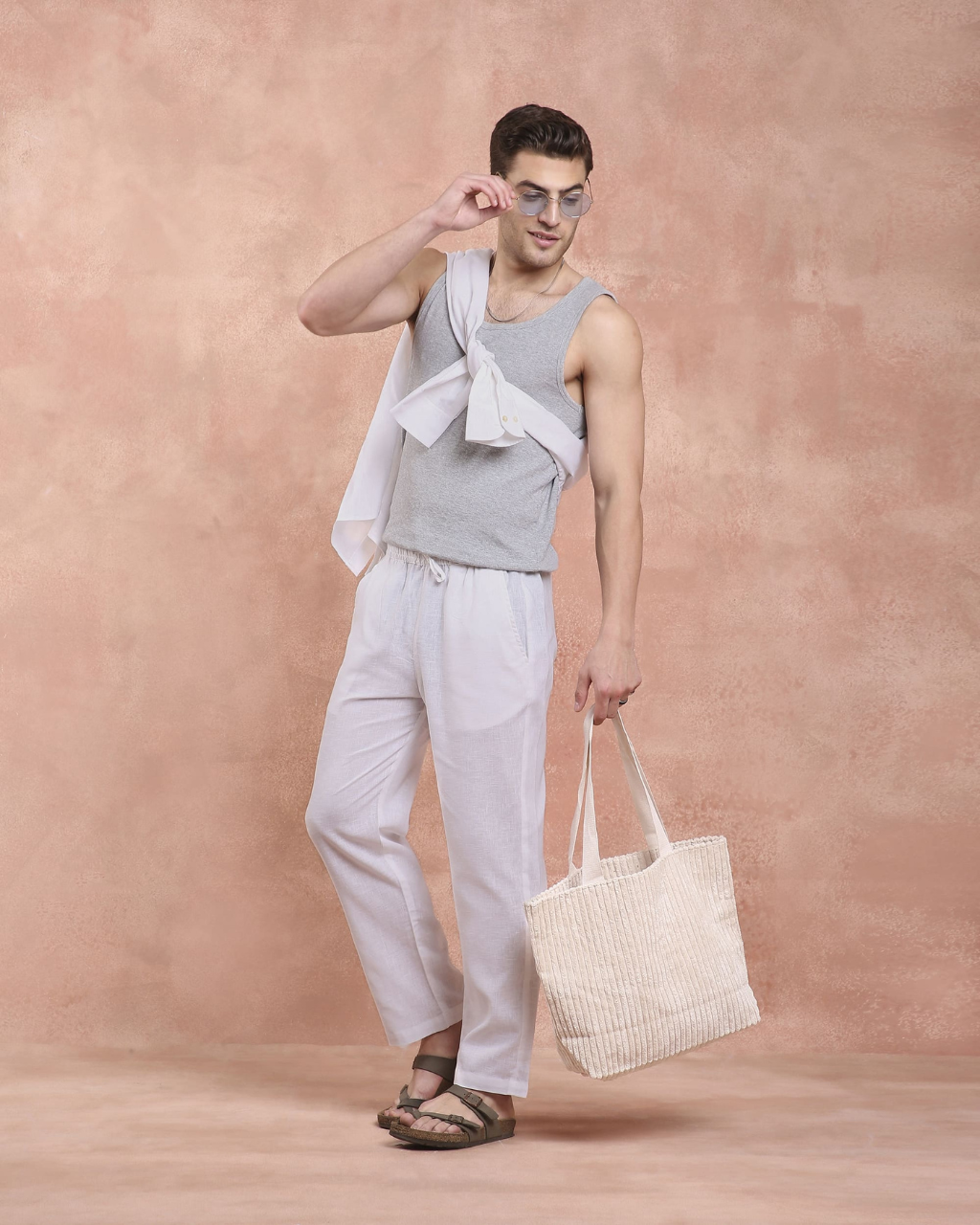 Calm tone meet clean tailoring in these Pants. Featuring neutral white they’re the kind of bottom that works from AM café runs to PM scenes — soft, relaxed, and totally repeatable.